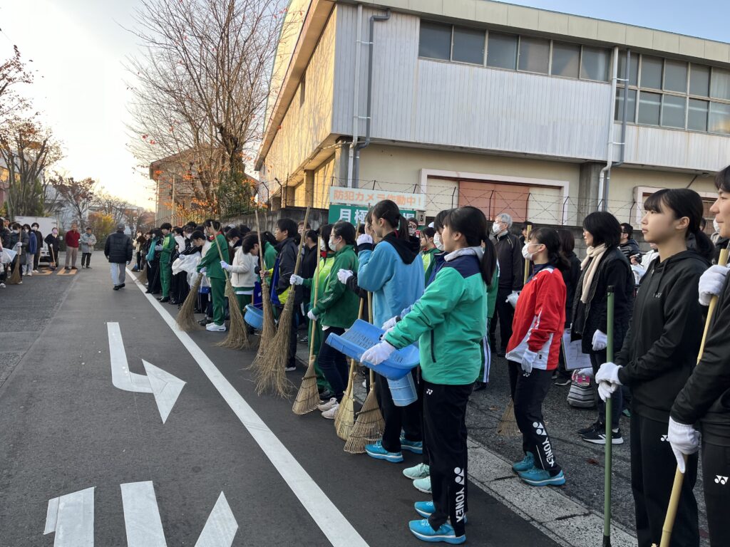 12月とは思えないくらい、ポカポカと暖かな日曜日の朝、たくさんの生徒さんと保護者の皆様、先生方、そして町内の皆様と一緒に学校の周りを綺麗にお掃除しました