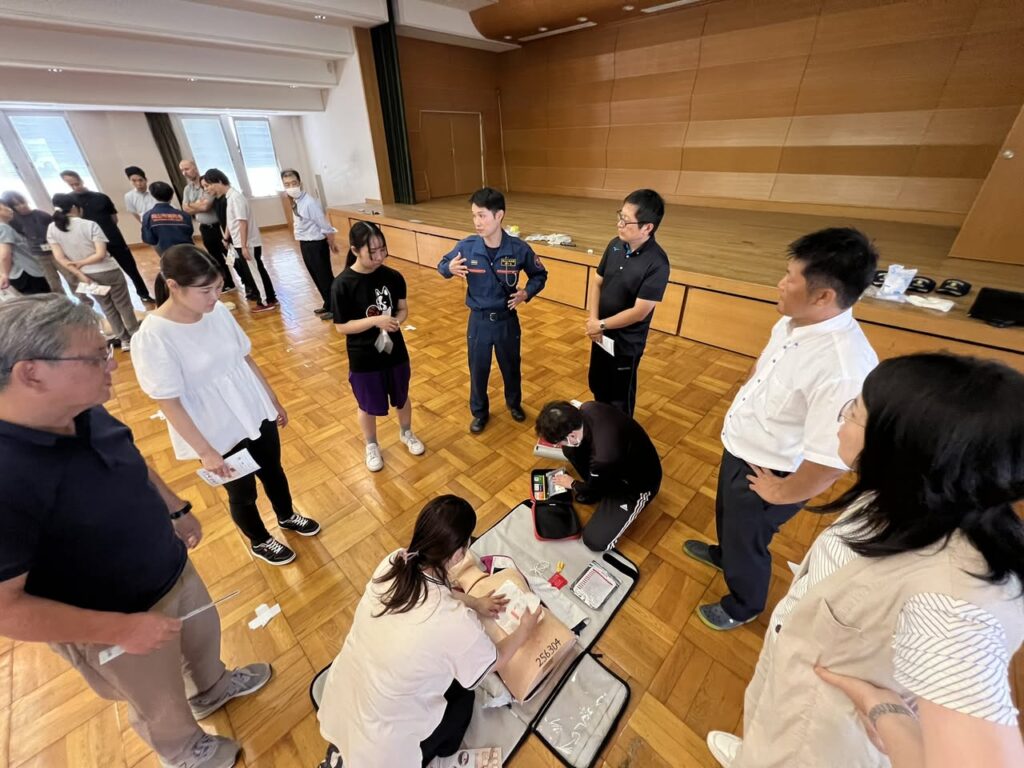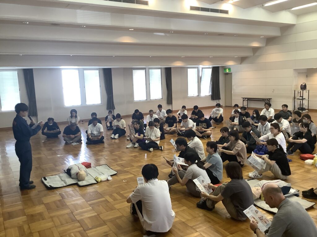 岡山市消防局の職員の皆さんの指導のもと、人工呼吸がうまくいかなくても、心肺蘇生は絶対に止めてはいけないこと、AEDは救急隊が到着するまで、つけ続けておく必要があることなど多くの学びがありました。